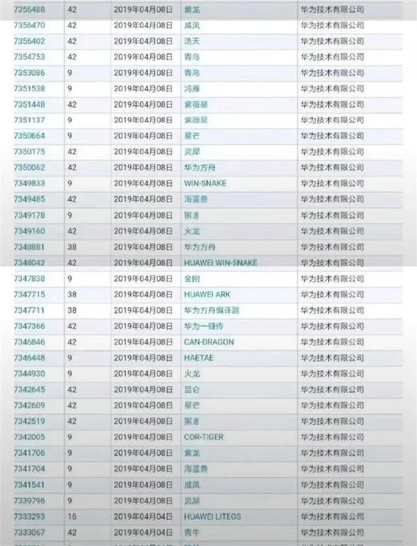 不仅如此,华为还在去年陆续提交了一大批涉及上古神兽的商标注册申请,其中就有这个“灵犀”,此外还有:白虎、鸿鹄、饕餮、火龙、紫龙、威凤、青牛、腾蛇、灵犀、青鸟、朱雀、丹雀等等。