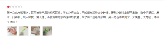 在选购时,看某品牌电动牙刷评论,竟然有用户说自己买到的电动牙刷充电时爆炸。原来,电动牙刷也有这样的危险时刻?