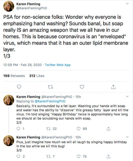而约翰霍普金斯大学生物物理教授KarenFleming更是建议在洗手时唱两遍生日歌。