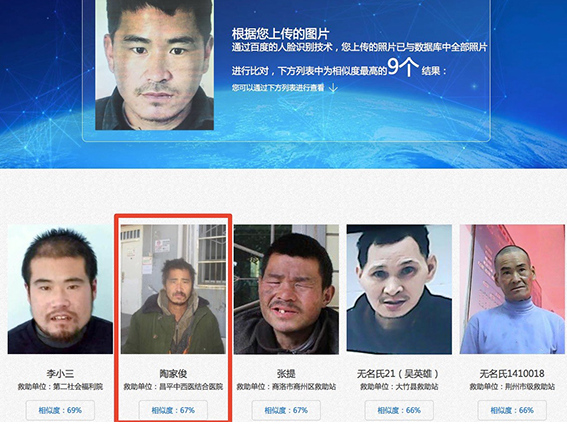 有了网络的联结,寻亲者上传失散家人的照片实际就是连接了一个人脸对比的资源库,照片经过与全国各地救助站、宝贝回家等公益寻人平台登记的数万名走失人员进行实时对比,系统将快速锁定相似度较高的照片,这是人力几乎无法完成的工作量。而准确度上,百度人脸识别早已接受了2亿张样本图片的训练,识别准确率已达到99.7%,并且支持跨年龄识别,这是人力几乎不可复制的识别力。