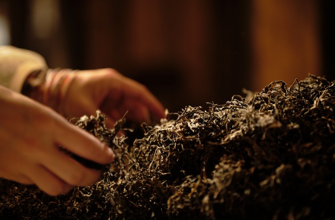 以临沧高山料加工的晒青毛茶,光渥堆发酵就足足用了50天的时间,让茶叶在适宜的温湿度里慢慢转化、褪去最初的青涩,逐渐形成普洱熟茶的醇厚底蕴。