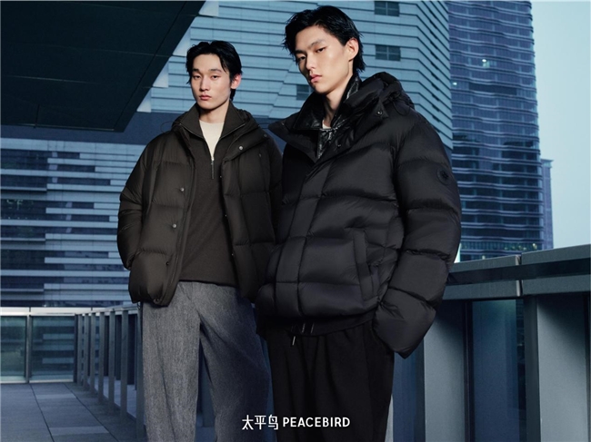 此外,本季品牌还带来了三大国际设计师联名系列——太平鸟PEACEBIRDXOAMC联名系列、Peter Do for PEACEBIRD、PEACEBIRD × Ludovico Bruno大师羽绒。这些作品巧妙地将常服设计融入当代时装语境,以自由而自洽的冬日美学,诠释都市男女的摩登姿态,构建出融合城市通勤与轻户外场景的长期衣橱。