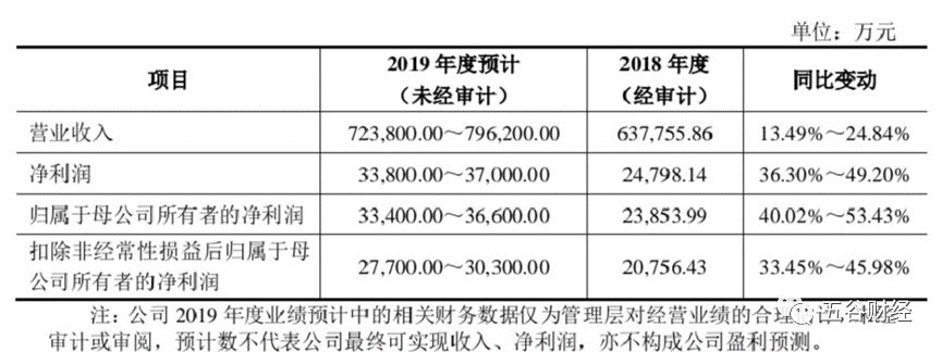 招股说明书数据显示,良品铺子预计2019年全年实现营业收入约72.38亿元至79.62亿元,同比增长13.49%至24.84%;预计实现归属于母公司股东净利润约3.34亿元至3.66亿元,较上年同期增长40.02%至53.43%,预计营收与净利均可实现良性增长。