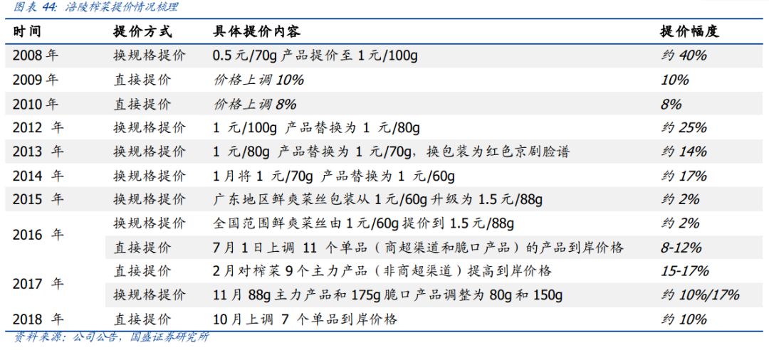 涪陵榨菜的涨价策略是一套组合拳。过去10年,它有记录的涨价一共12次,无论是面对成本上涨的直接提价,还是改小包装之后的变相提价。
